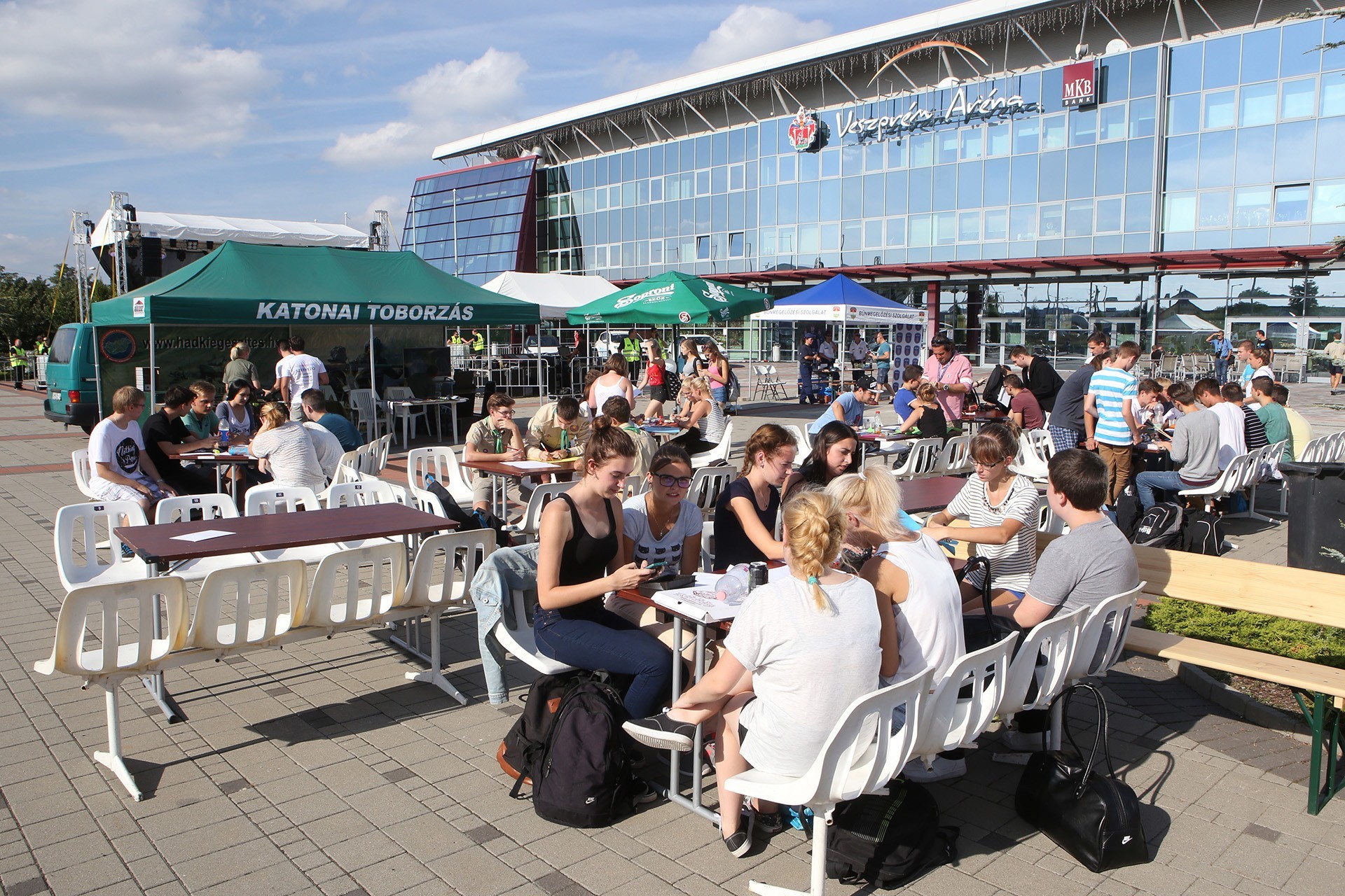 Fiatalok lepték el az Aréna előtti teret pénteken. Sportprogramok, vetélkedők, kézműves sátor, lézerfegyverek, Majka és Curtis és még egy halom izgalmas dolog!
